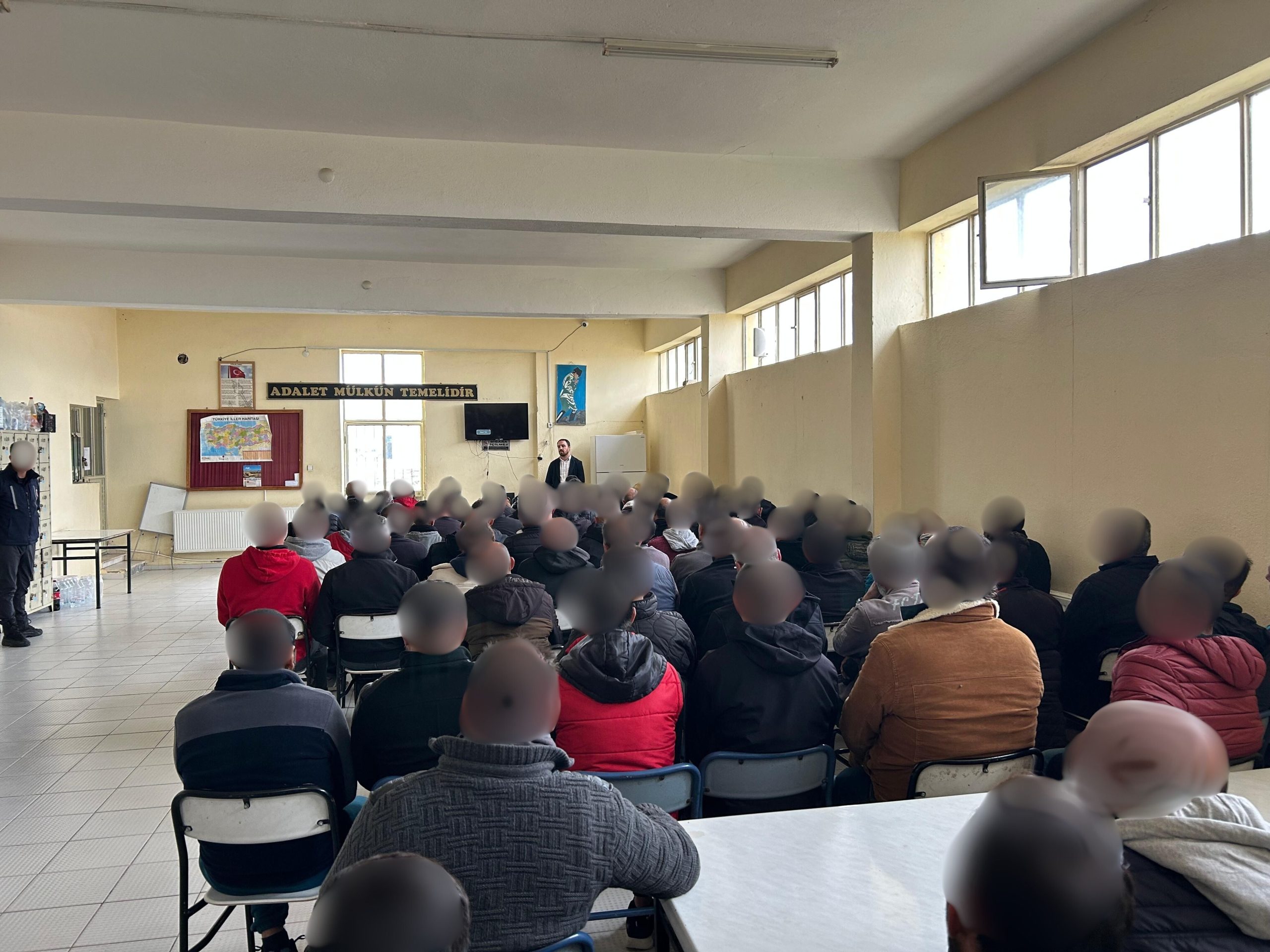 Sandıklı Açık Ceza İnfaz Kurumundaki hükümlülerin rehabilite edilmeleri, ıslah edilmeleri ve topluma kazandırılmaları için 9 Ekim 2025 tarihinde Yüksekokulumuz Sosyal Hizmet Bölümü öğretim elemanlarından Dr. Öğr. Üyesi Musa GÜREL, Dr. Öğr. Üyesi Recep BOZKURT ve Öğr. Gör. Gökçe ULUIŞIK tarafından “Madde Bağımlılığı” konulu seminer verilmiştir.