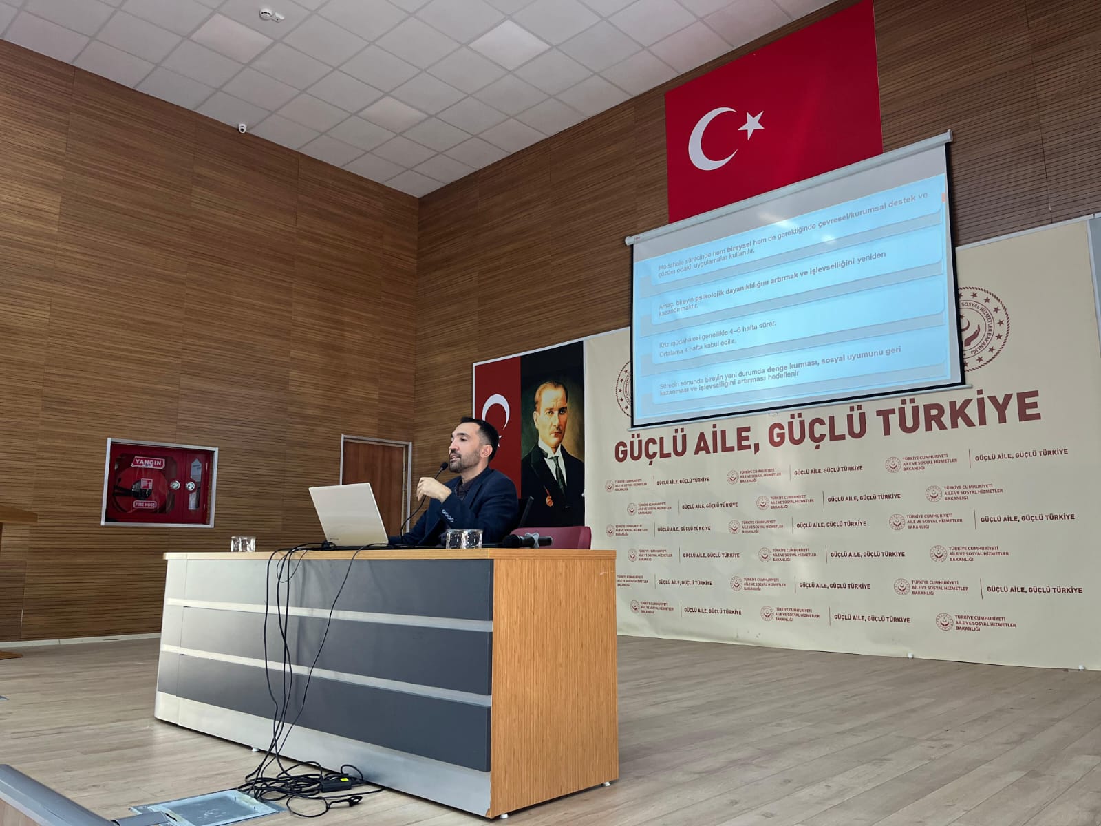 Krize Müdahale ve Çatışma Yönetimi Eğitimi-2 Yüksekokulumuz öğretim üyesi Doç. Dr. Cumhur GÜNGÖR tarafından Afyonkarahisar Aile ve Sosyal Hizmetler İl Müdürlüğü meslek personeline “Krize Müdahale ve Çatışma Yönetimi” eğitimi 20 Kasım 2025 tarihinde verilmiştir. 20 Kasım 2025, Perşembe 30 kez görüntülendi