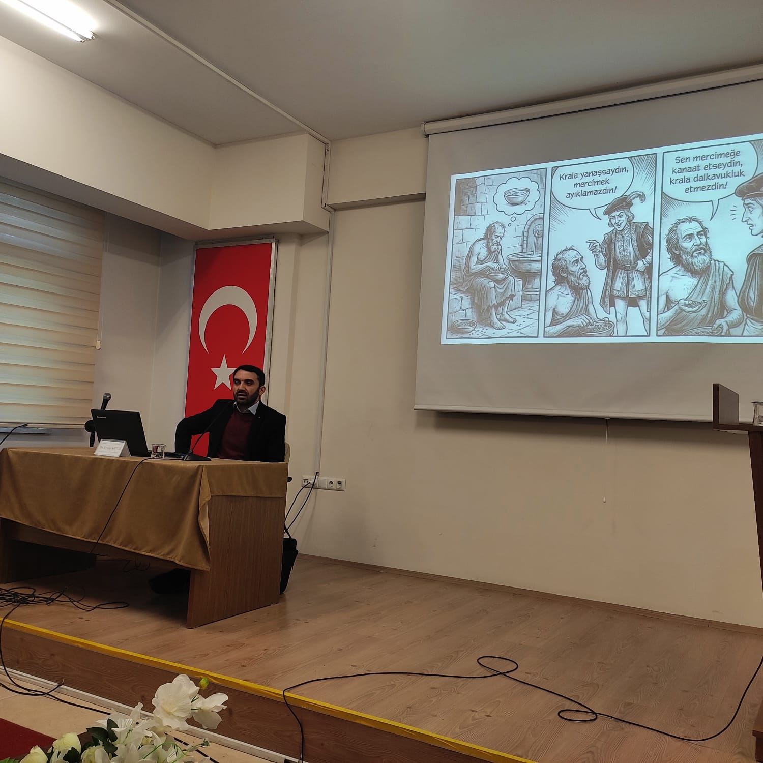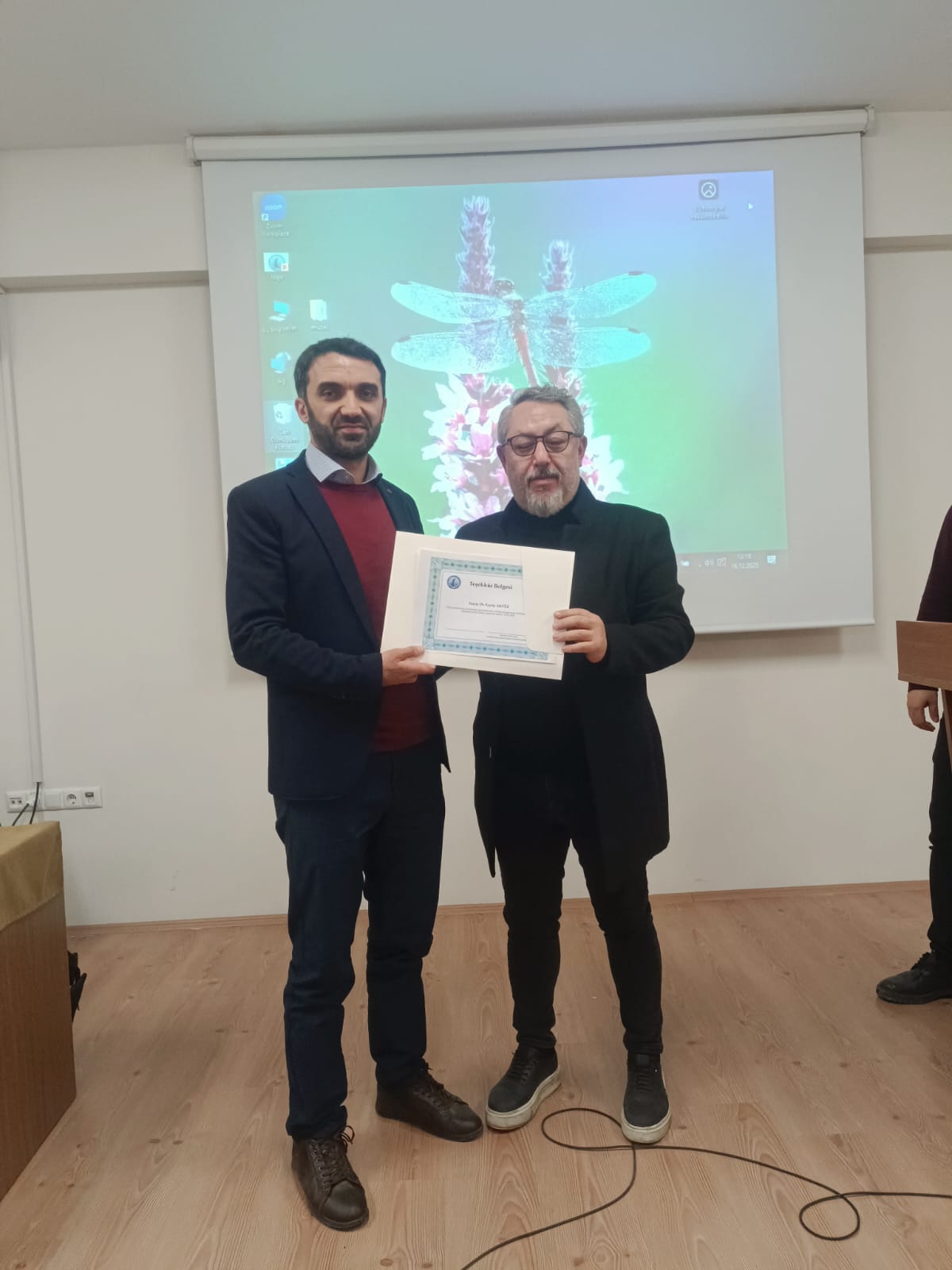 Söyleşinin sonunda Dr. Eyyüp AKYÜZ’e Sosyal Hizmet Bölüm Başkanı Doç. Dr. Hamdi KORKMAN tarafından Teşekkür Belgesi takdim edildi.